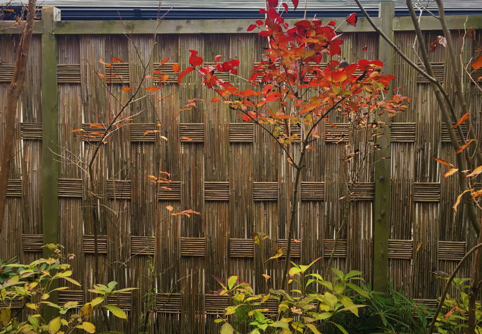 竹垣やウッドフェンスは周囲からの視線を遮るとともに、木々の、その空間の背景として庭に溶け込んでいきます。竹垣などの構造物でその場を囲うことにより庭がより身近な、プライベートな空間となります。